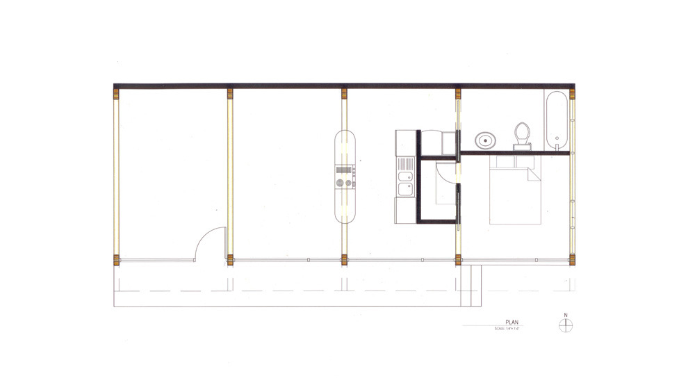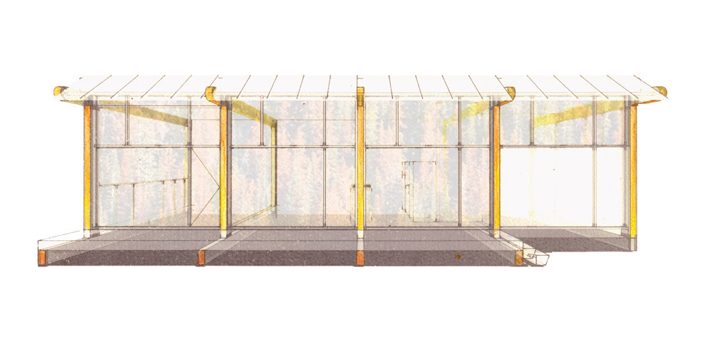 The intention of this modular structure is to provide a sustainable dwelling/ work space for North Americans. The structure's materiality and energy engineering result in a space that makes more energy than it consumes. The unique structural engineering of the building allows for varied placement possibilities: it may be settled onto cleared land, atop an existing building, connected to an abandoned foundation, integrated into urban voids.