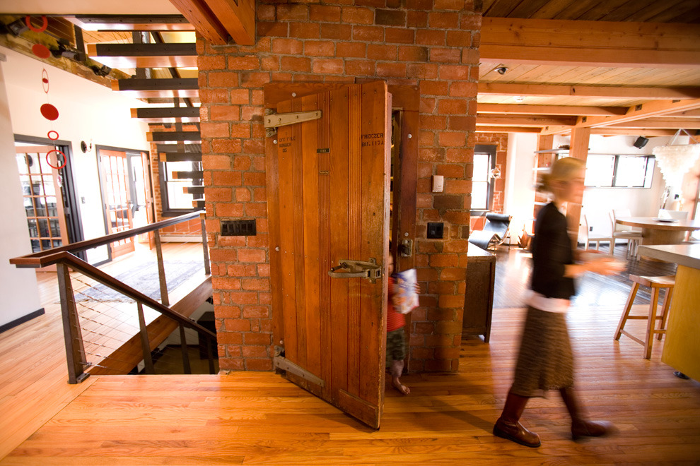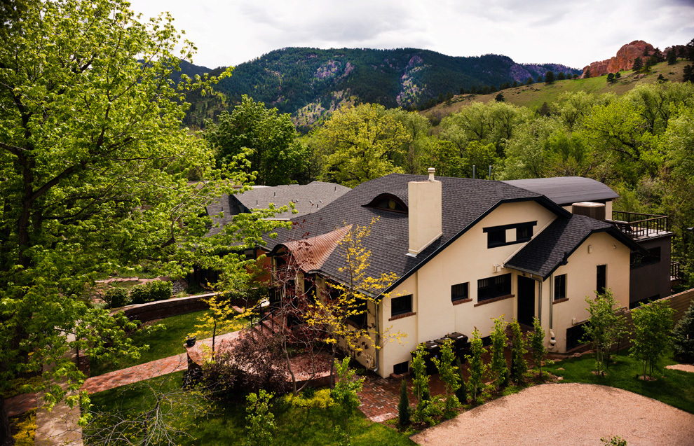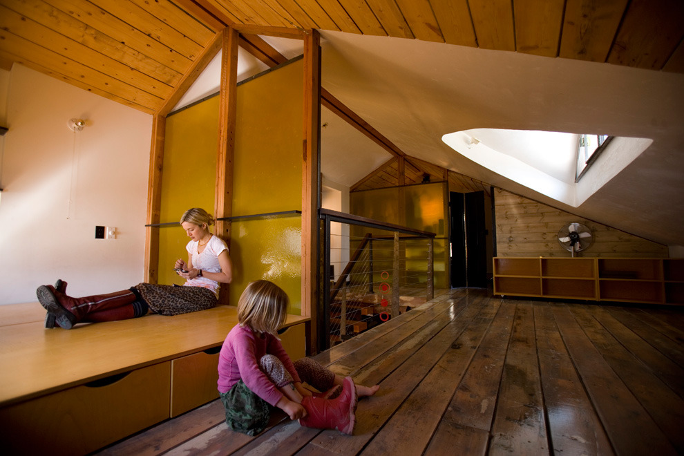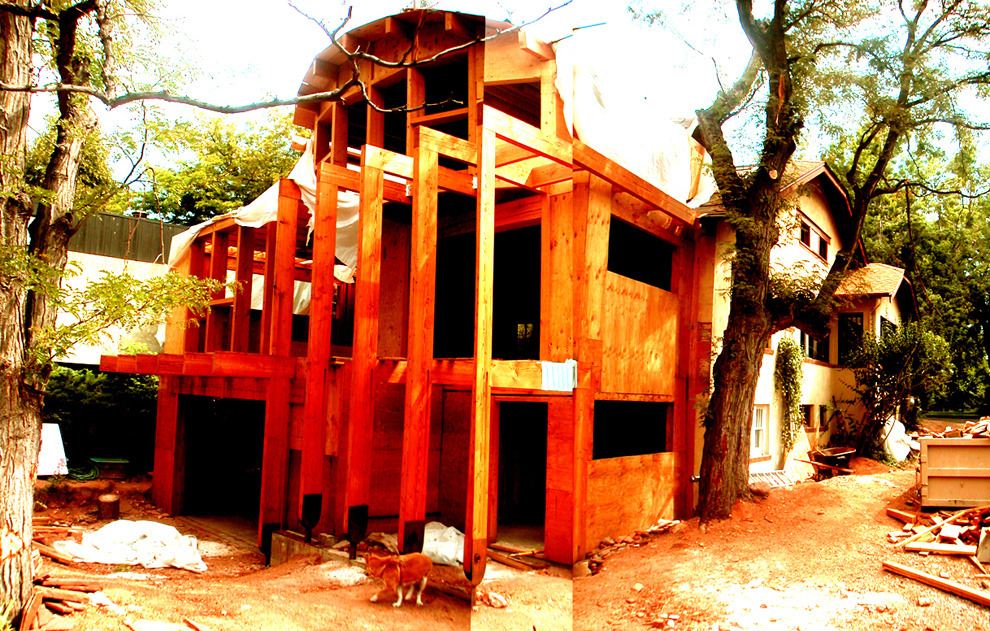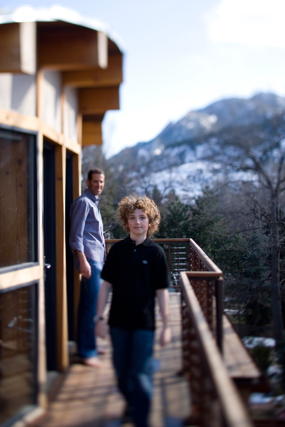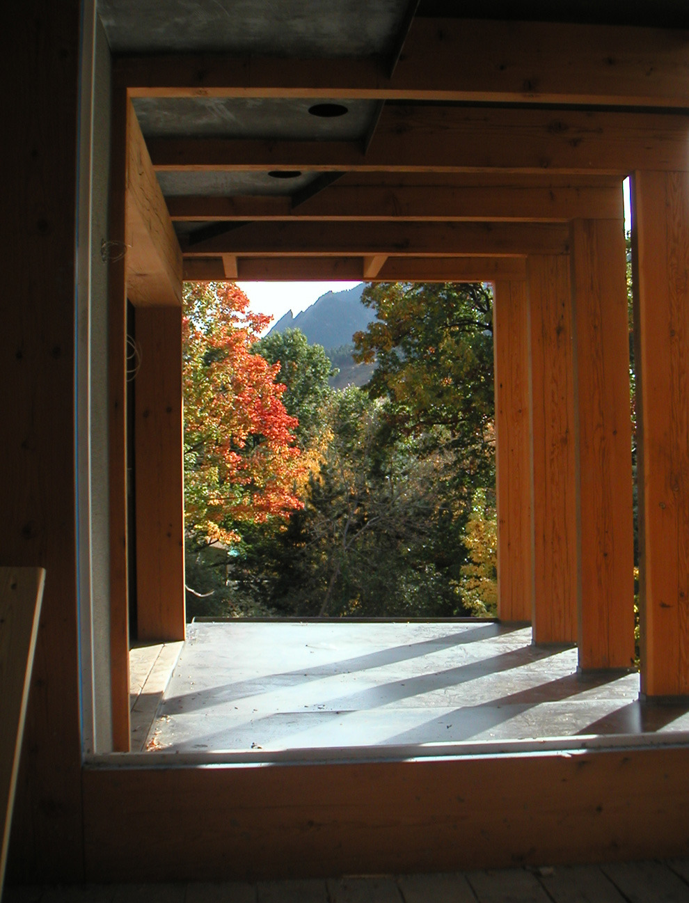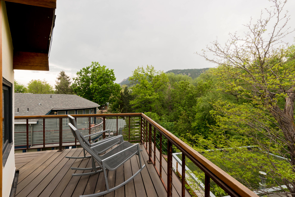 Remodel and addition for a 1923 arts & crafts home in a challenging landmark zone- the historic Mapleton Hill District. The original home consisted of a rustic basement, main floor, and uninhabitable attic. tres birds workshop made it so that all three floors are usable and connect visually with light. Vertical connection comes with large stair openings, light enters from the third floor down to basement. Horizontal connection comes from an addition to the back of the house, each floor extending to the outdoors: stream, wildlife corridor, and foothills. The entire remodel structure was built from reclaimed Douglas Fur beams that were previously part of a downtown Boulder building. A large, glass garage door in the basement playroom opens to more playing in the yard. Visual connection and experience with the land is constant.