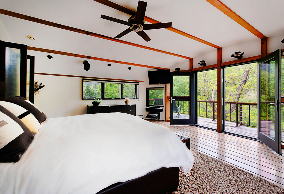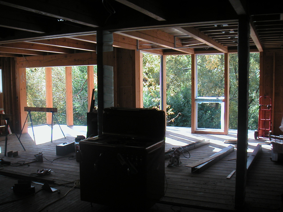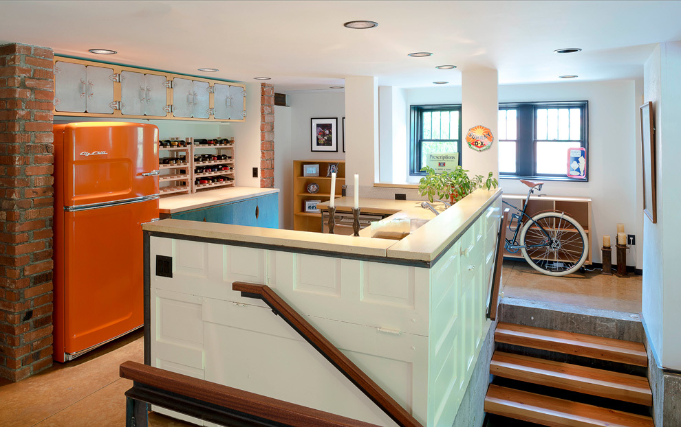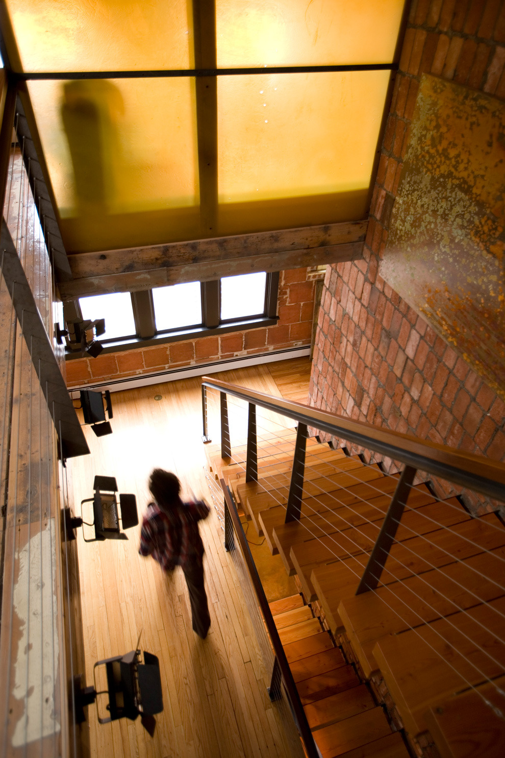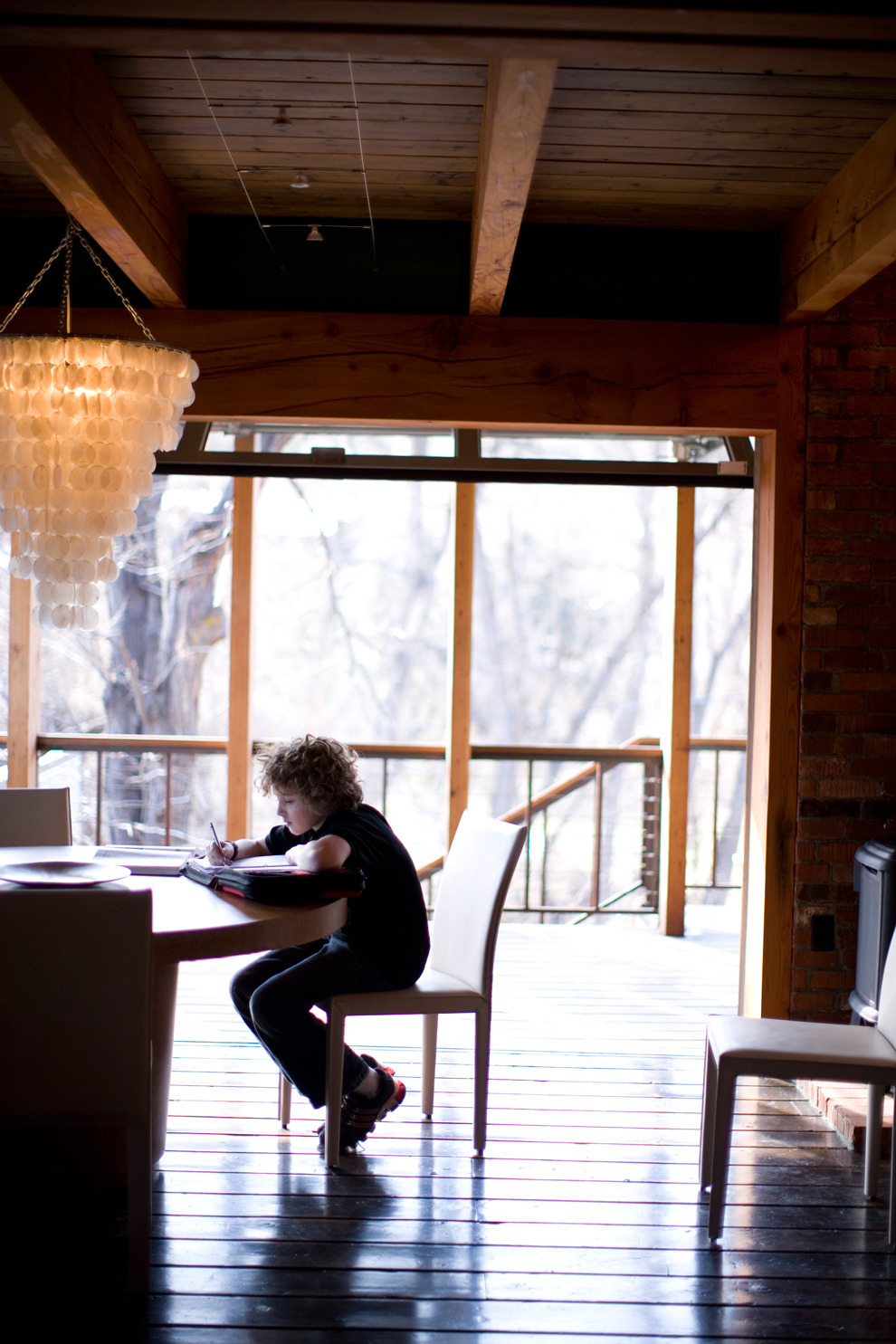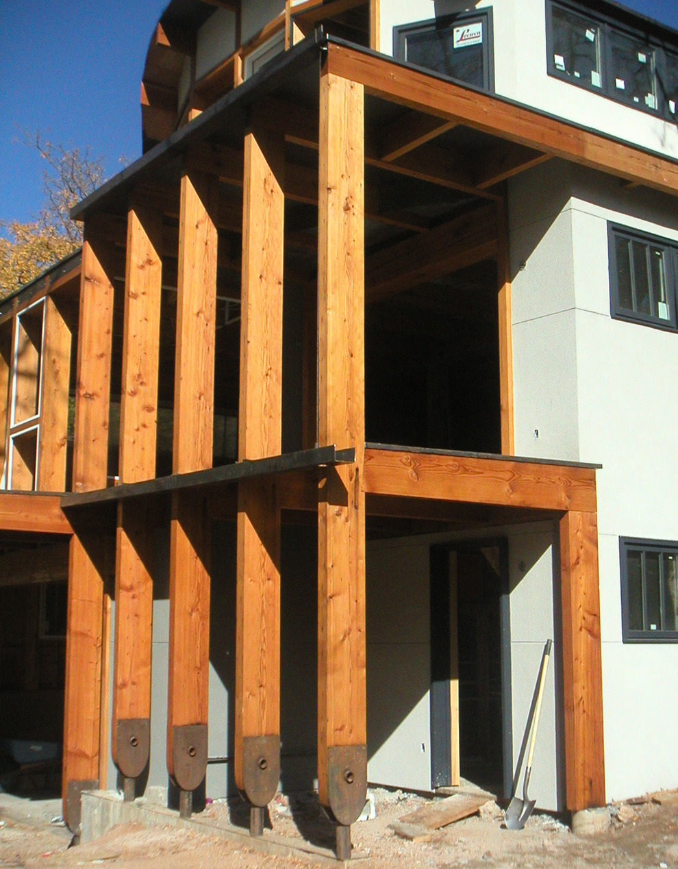 Remodel and addition for a 1923 arts & crafts home in a challenging landmark zone- the historic Mapleton Hill District. The original home consisted of a rustic basement, main floor, and uninhabitable attic. tres birds workshop made it so that all three floors are usable and connect visually with light. Vertical connection comes with large stair openings, light enters from the third floor down to basement. Horizontal connection comes from an addition to the back of the house, each floor extending to the outdoors: stream, wildlife corridor, and foothills. The entire remodel structure was built from reclaimed Douglas Fur beams that were previously part of a downtown Boulder building. A large, glass garage door in the basement playroom opens to more playing in the yard. Visual connection and experience with the land is constant.