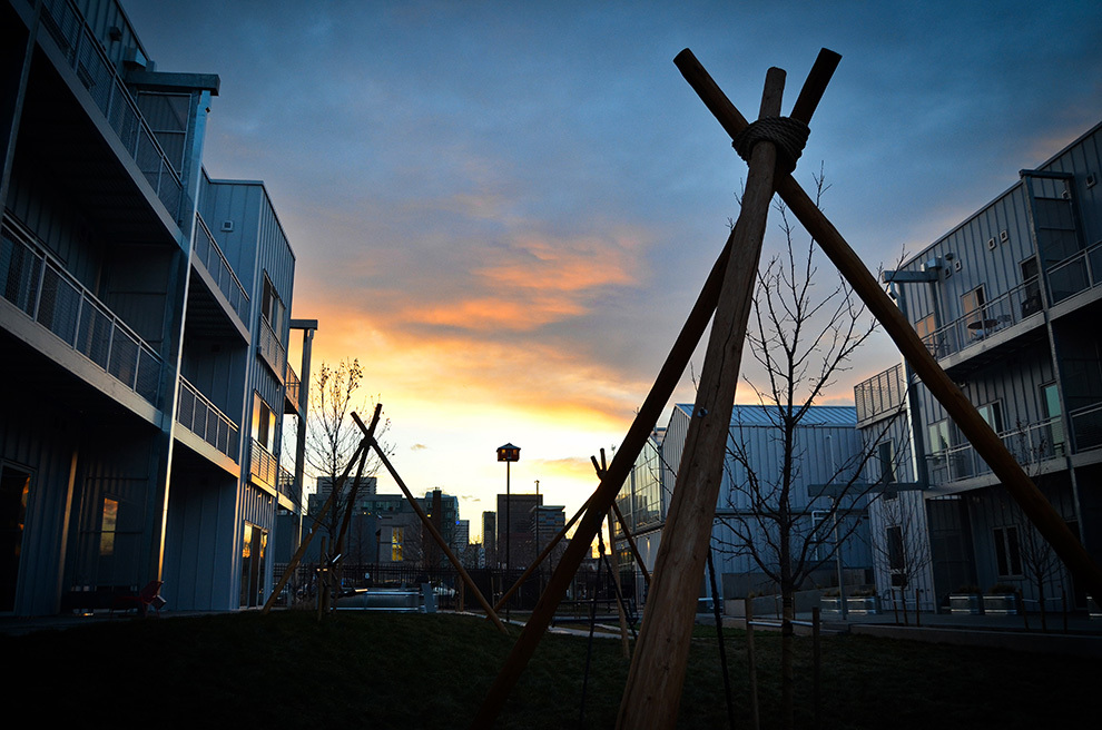 14 custom birdhouses were designed and built in the Tres Birds Denver workshop. “We wanted to learn about the patterns and needs of the local birds. What types of birds are native to this land? What kind of homes did they build themselves? How could we encourage them to live among the residents at S*Park?” continues Moore. Each with different shapes, entry sizes, colors, and facing unique directions, the houses welcome chickadees, finches, sparrows, and many others to the gardens.
