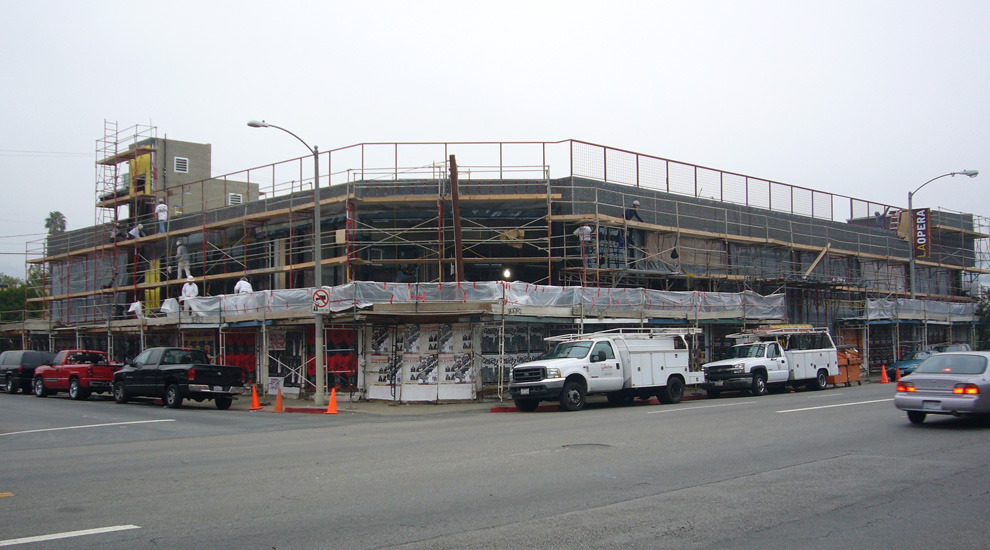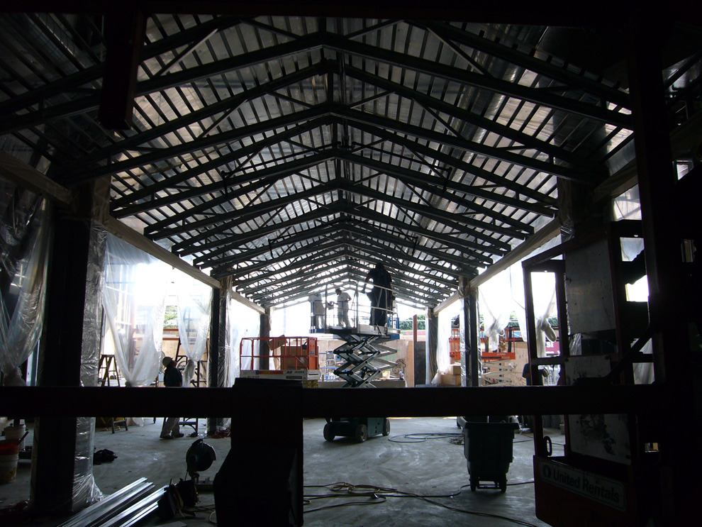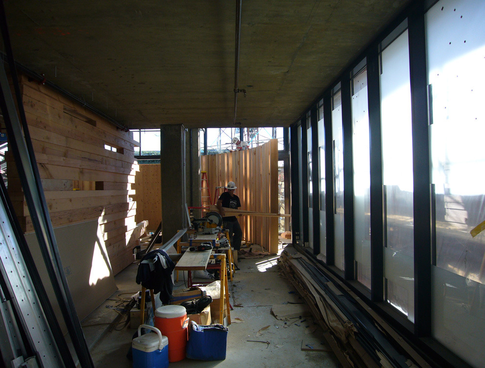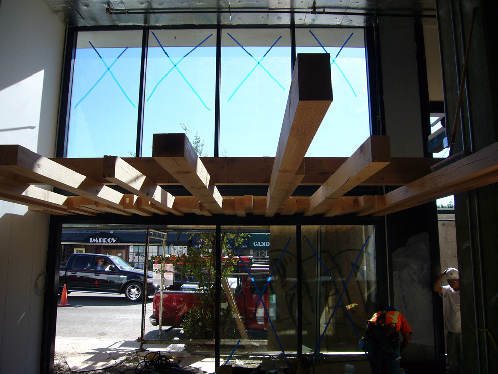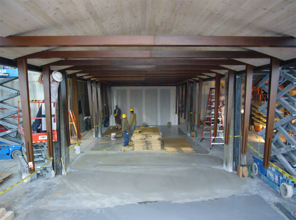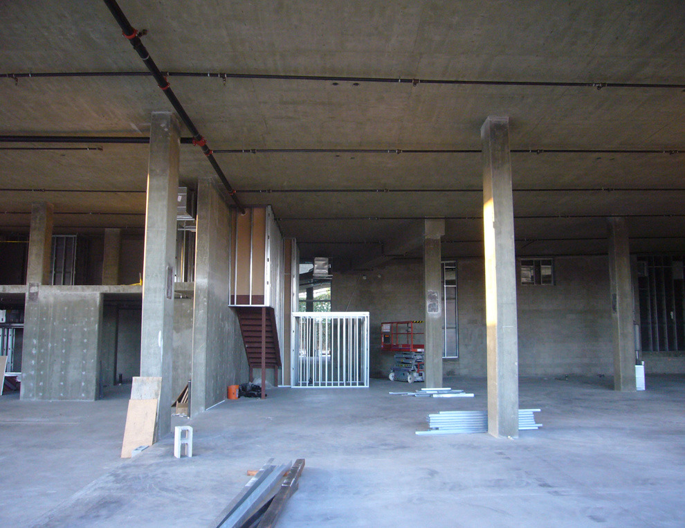This haven of action sports, dedicated to the surf, snow and skate enthusiast is a familar West Coast destination. The 11,500 s.f., post-tensioned concrete shell was filled with site-specific, tres birds fabricated elements, such as cores and board alleys. Maple floors curl up to exhibit snowboards. Steel truss and IPE wood surf structure cradle surfboards. Videos exhibiting the lifestyle terminate each alley. This stage scene is set on vibrant Melrose Avenue.