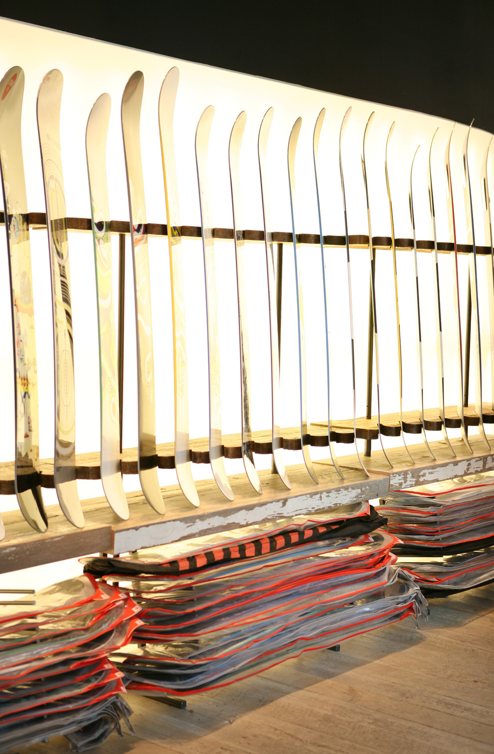 Second Burton store to descend upon Vail, this one in Vail Square. Boasting a large demo fleet, it fulfills any rider’s winter escape. Design focuses on a few key moves to the store, not on each display fixture. Ribbon light of snowboards face the entry. Warm wood flooring shifts direction and runs vertically, entices and guides the shopper. Wave curls up from the same floor. Slopeside lounge catches those who just want a moment to park.