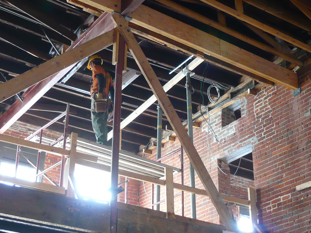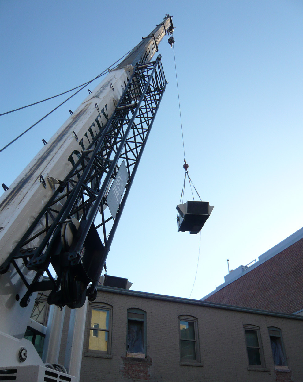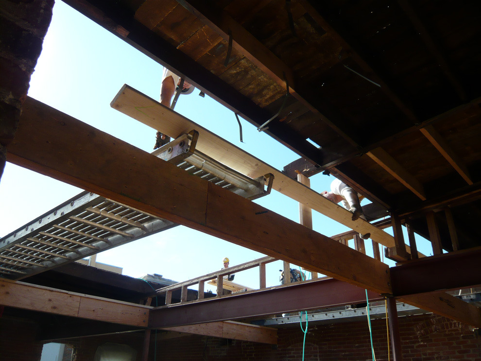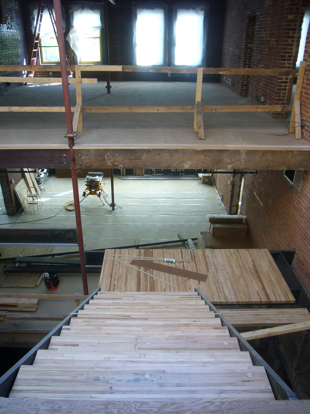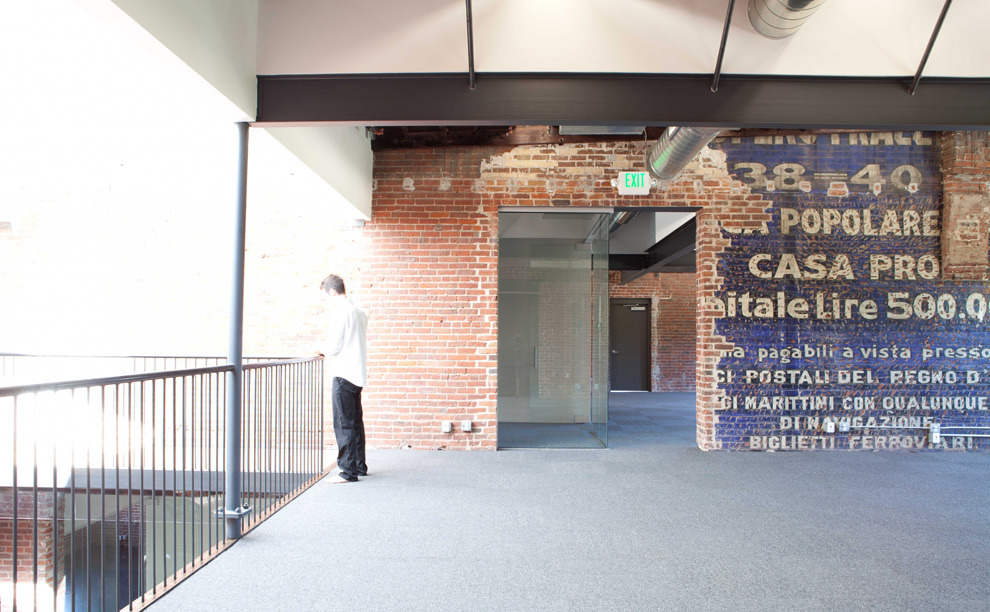 Addressing the first priority of light and openness, the building was stripped down to its component pieces of brick, wood and steel. Introduced materials were limited to steel, glass, and reclaimed maple wood. Through the creation of a large central atrium, made of maple floors from old railroad boxcars, sunlight now reaches all occupants and floor levels, including the rubble basement, previously regarded as a dungeonous area to be avoided. Now it is home to a day lit kitchen and place for project-based meeting rooms. Incorporating the building into the history of it’s neighborhood and giving a nod to the historic building itself, the exterior was fit with armature made from old railroad tracks, which will become heavily vegetated over time. Not only does this add a pleasing natural aesthetic, the vegetation will further contribute to sun shading and the energy efficiency of the building. In this system, the main source of temperature control is via the roof, which is heavily insulated to adapt to heat and cold conditions, providing optimal comfort to building inhabitants. Throughout the building, all systems were modified into what is now a highly efficient, well-lit incubator for some of Denver's finest creative professionals.