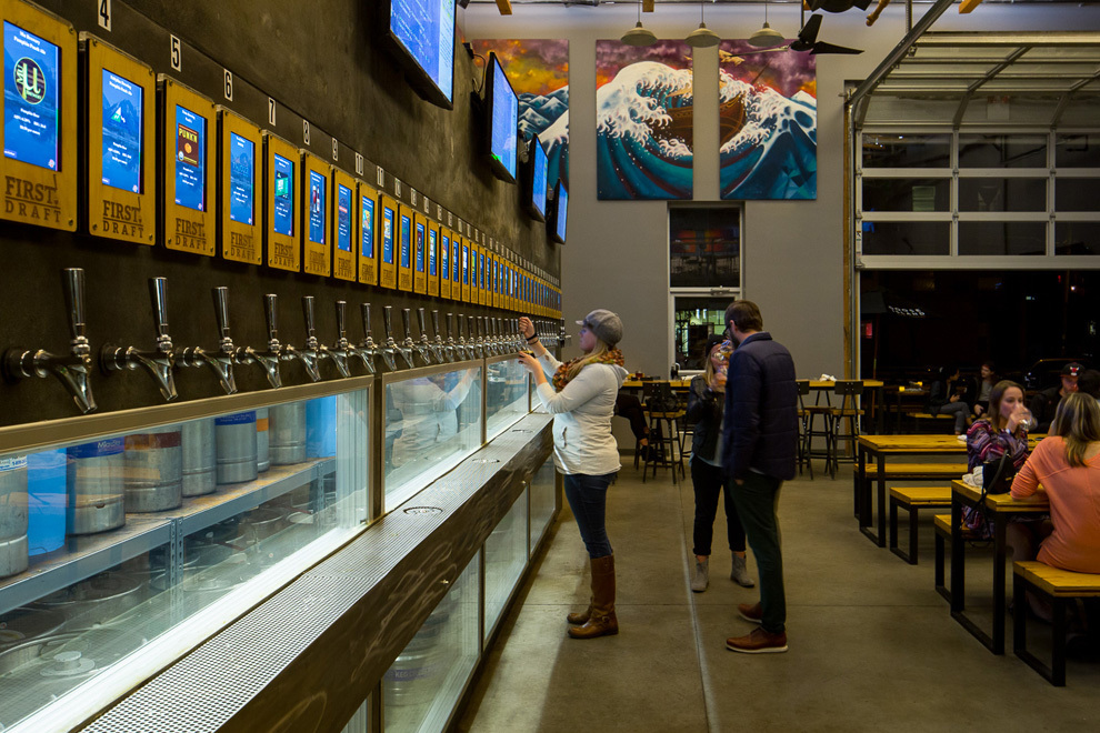 Nestled in one of the country’s epicenters of craft beer, First Draft is a new restaurant concept that allows visitors to sample flavors from all over the country, while pouring their own. Engaging people in the process of the pour, patrons of First Draft essentially get to create their own tasting room experience. Pretty sweet.