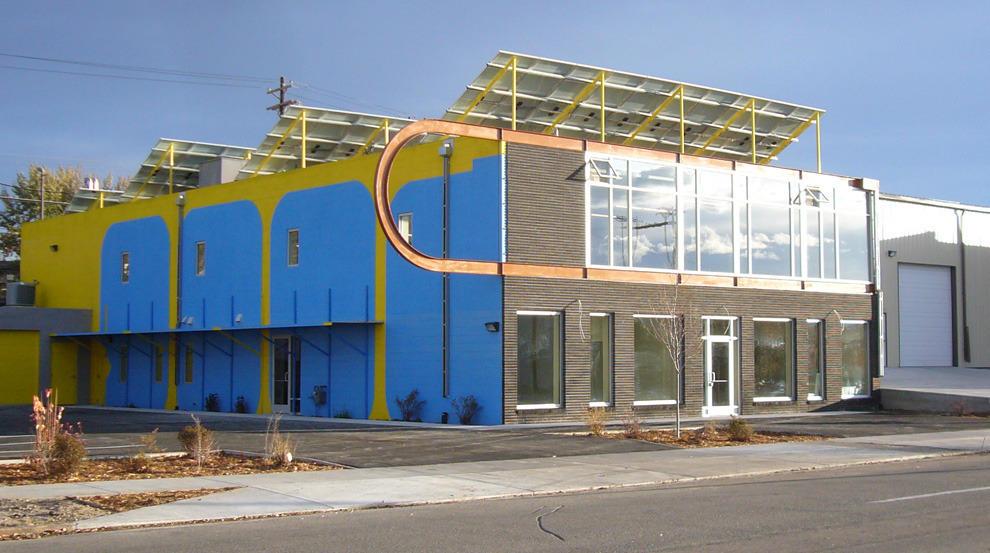 We opened this 1960's, dark, inefficient, unoccupied storage building to the sun, allowing the sun's infinite source to energize it. Passive solar provides winter heating and produces electricity on-site. The transformation to a healthy, net zero energy-use building was quick and inexpensive.