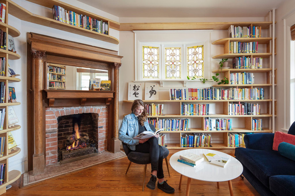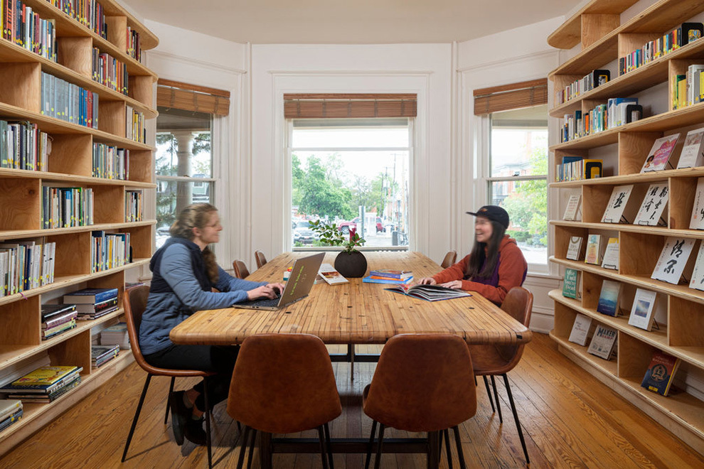 During the COVID pandemic of 2020-2021, the move to remote work allowed the company to hire remote workers and realize that they could do with less space. Shambhala decided to relocate to a smaller location that could house their library of publications, meeting space, and a smaller number of offices. After choosing a 1900 Victorian house in Boulder, Shambhala reached out again to Tres Birds to help them reimagine their offices in the new space.