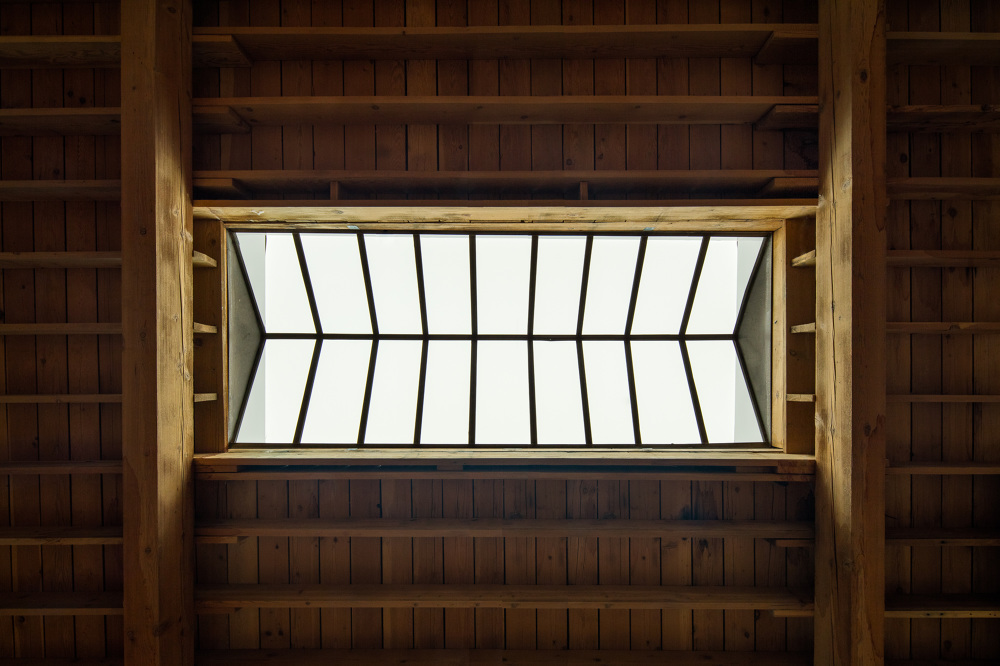 Along the open-air walkway, window openings were either left empty, or filled with aspect tuned glass panes. From the inside, the glass pulls soft light into the space. From the outside, it creates a flickering effect like ripples on water, drawing from the sensory qualities of the adjacent Platte River. Custom domes placed over the original skylight structures pull soft light into the inner corridors while maintaining early-1900s industrial aesthetic. All other windows are aspect tuned, meaning each window’s transmittance coefficient is tailored to its specific location on the building.