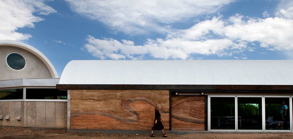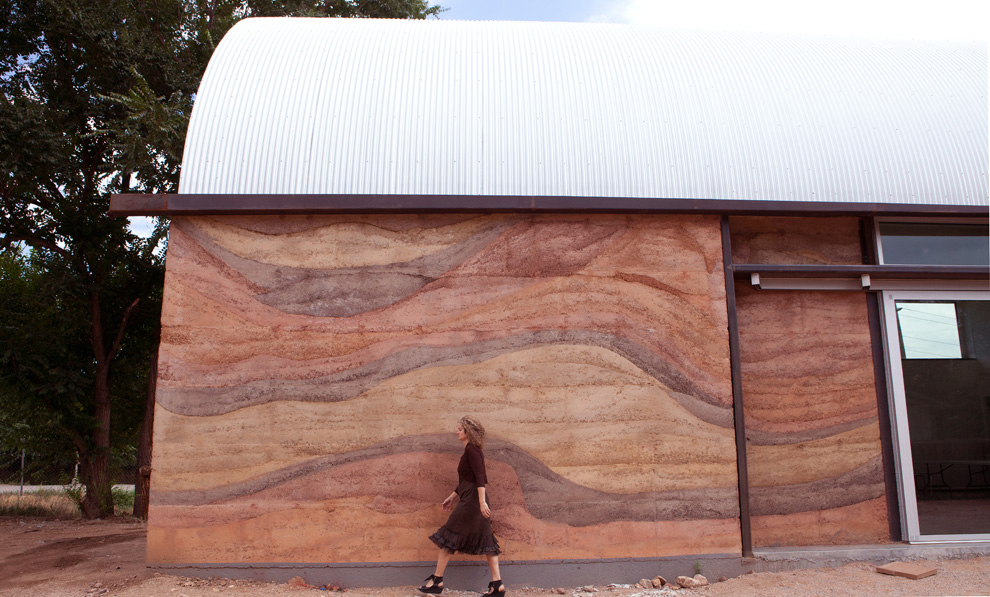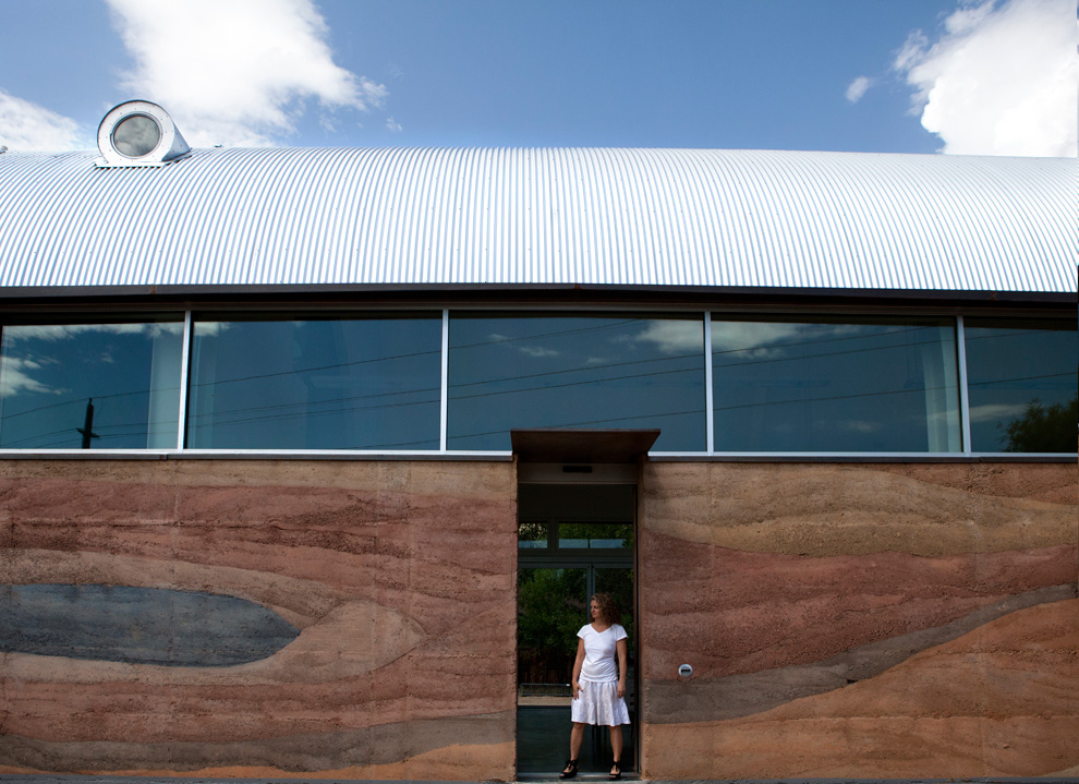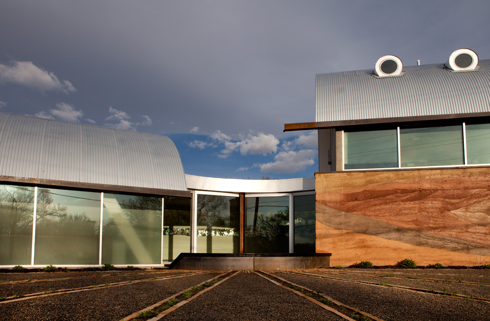 The structure was built using 200 tons of rammed Earth, a composite of regional dirt and pigments, compressed into 30” thick walls. This adds significant thermal mass to the building’s whole, optimal for temperature regulation. Bearing the structural load, these dense walls allow the space to exist free from obstructions, ideal for a simplified interior and exhibiting artwork.