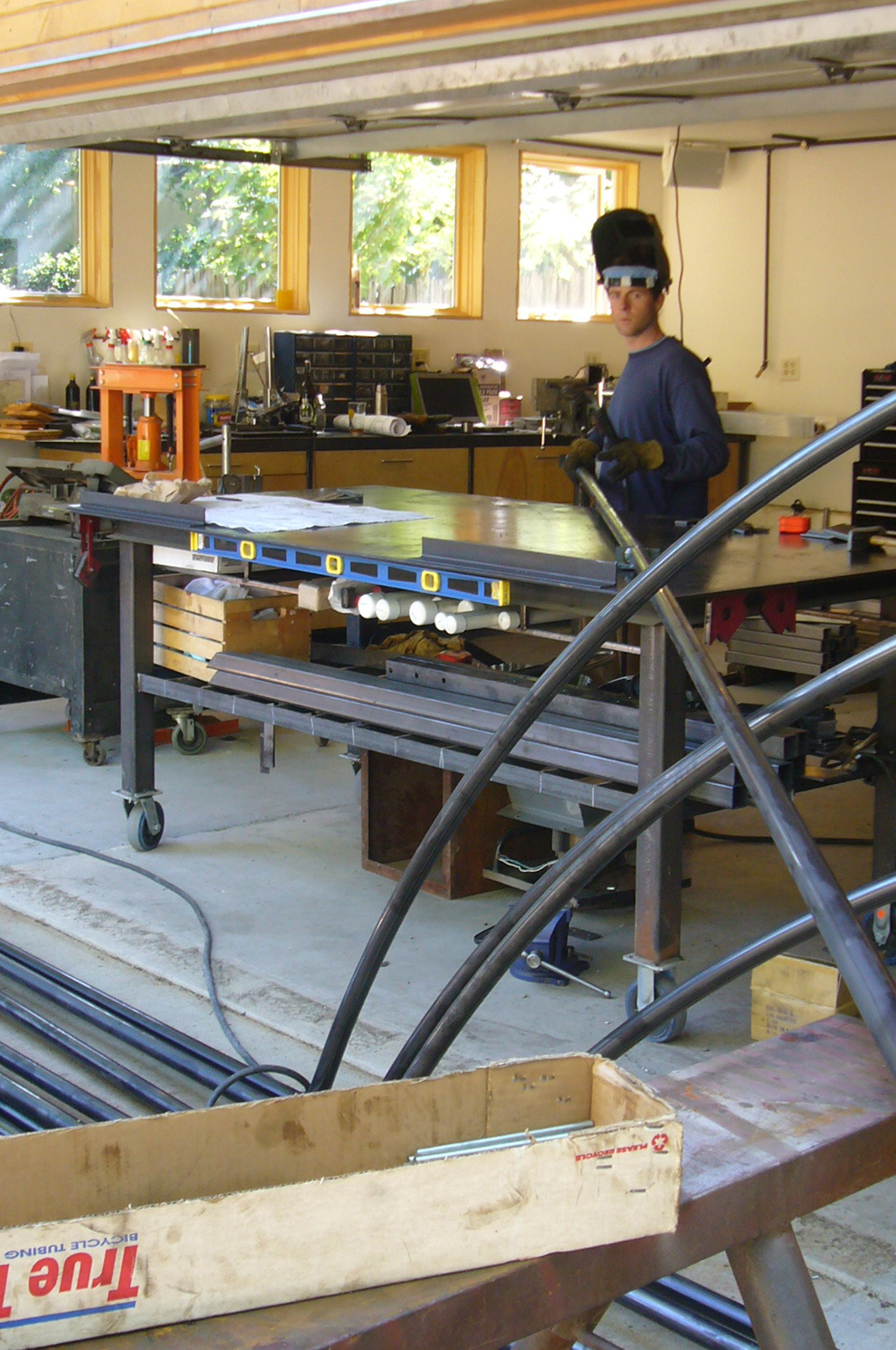 reclaimed bicycle wheels, aircraft cable, reflective glass micro-beads, steel pipe